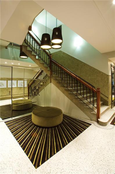 Many of the existing heritage features have been retained including the grand terrazzo stairway, original glazed foyer tiles and decorative ceilings. These features have been additionally enhanced by fluted glass doors and highlights, art deco signage and graphics, and bevelled mirrors.