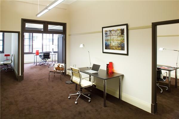 Some of the larger office studios also have their own kitchenettes and bathrooms and others have an ensuite bathroom. Except for the smaller suites all offices are fitted with a multi functional joinery unit.